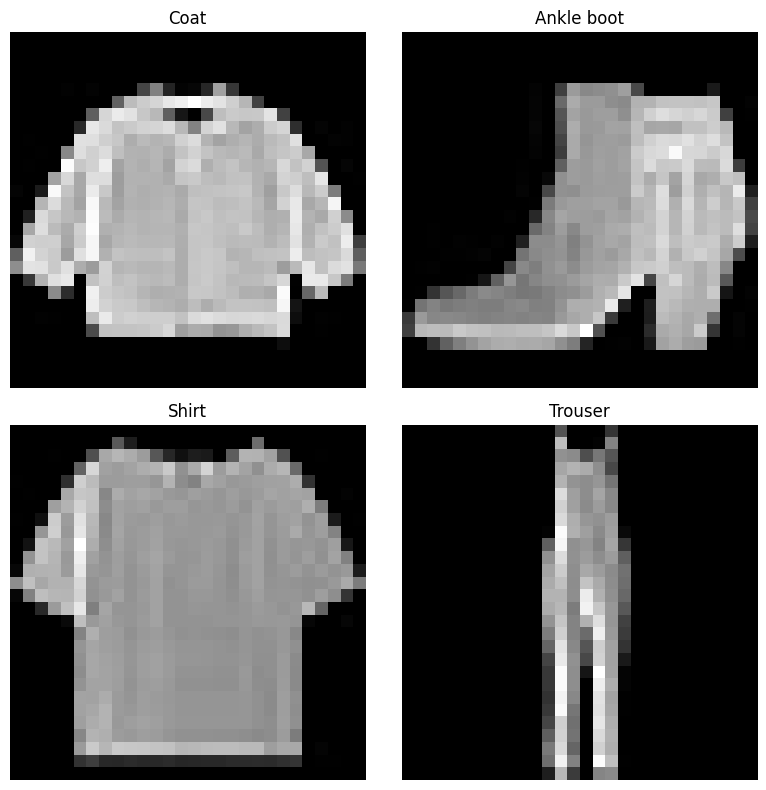class FashionMNISTDataModule(pl.LightningDataModule):""" PyTorch Lightning Data Module for the FashionMNIST dataset. Handles the loading, downloading, and transforming of data into train, validation, and test splits. """def__init__(self, data_dir="./data", batch_size=32, num_workers=4):""" Initializes the data module. Args: data_dir (str): The directory to store/download the dataset. batch_size (int): Number of samples in each batch. num_workers (int): Number of subprocesses to use for data loading. """super().__init__()self.data_dir = data_dirself.batch_size = batch_sizeself.num_workers = num_workers# Define transformations that will be applied to each data sampleself.transform = transforms.Compose([ transforms.ToTensor(), # Convert images to PyTorch tensors transforms.Normalize((0.5,), (0.5,)), # Normalize grayscale images ])def prepare_data(self):""" Download the FashionMNIST dataset if not already available locally. This method is only called from a single GPU. """ FashionMNIST(self.data_dir, train=True, download=True) FashionMNIST(self.data_dir, train=False, download=True)def setup(self, stage=None):""" Set up the dataset for the 'fit' and 'test' stages. Args: stage (str, optional): Stage for which the setup is being run. If 'fit', set up for training and validation. If 'test', set up for testing. """if stage =="fit"or stage isNone: fashion_full = FashionMNIST(self.data_dir, train=True, transform=self.transform)# Randomly split the dataset into training and validation dataself.fashion_train, self.fashion_val = random_split(fashion_full, [55000, 5000])if stage =="test"or stage isNone:self.fashion_test = FashionMNIST(self.data_dir, train=False, transform=self.transform)def train_dataloader(self):""" Returns: DataLoader: DataLoader for the training data. """return DataLoader(self.fashion_train, batch_size=self.batch_size, num_workers=self.num_workers, persistent_workers=True)def val_dataloader(self):""" Returns: DataLoader: DataLoader for the validation data. """return DataLoader(self.fashion_val, batch_size=self.batch_size, num_workers=self.num_workers, persistent_workers=True)def test_dataloader(self):""" Returns: DataLoader: DataLoader for the test data. """return DataLoader(self.fashion_test, batch_size=self.batch_size, num_workers=self.num_workers)